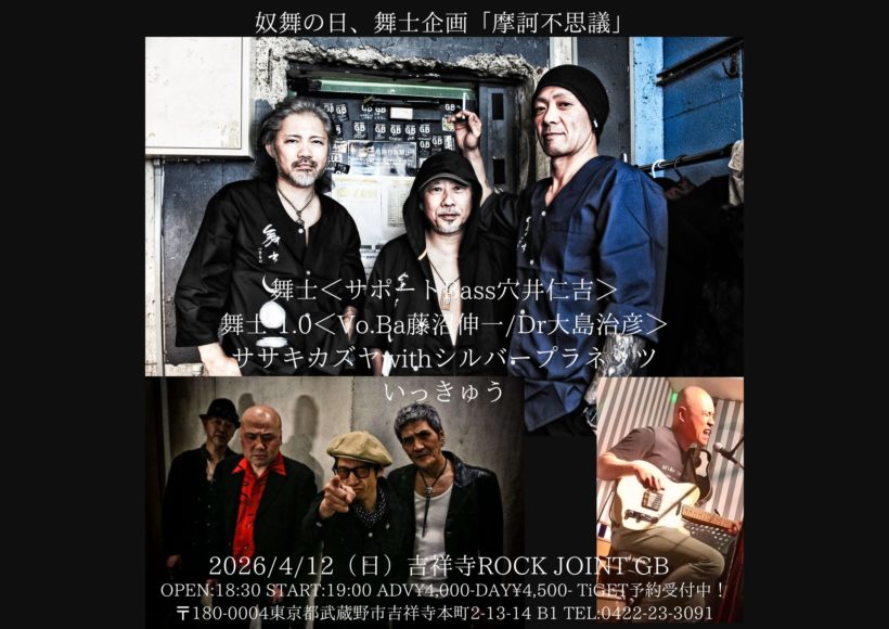 2026/4/12(日)吉祥寺ROCK JOINT GB舞士企画「摩訶不思議」舞士<サポートBass穴井仁吉> […]